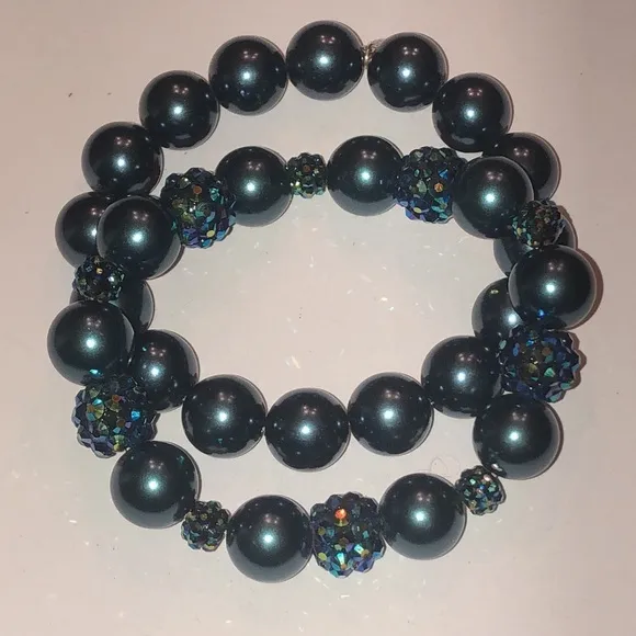 Roman Vintage Lot of Dark Metallic Green AB Rhinestone Boho Stretch Bracelets - $13 - From Vault