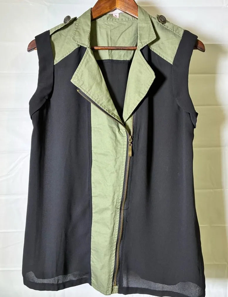 Chic olive green vest with a sleek design. Perfect for layering.