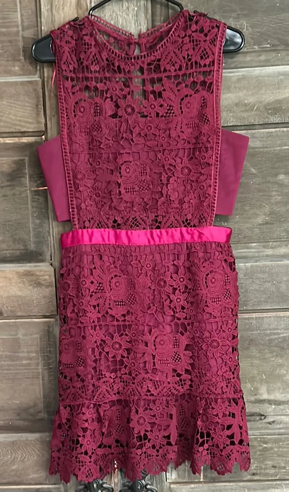Romeo & Juliet Couture wine-colored lace cutout dress Size Medium side cutouts Crochet Zipper Back