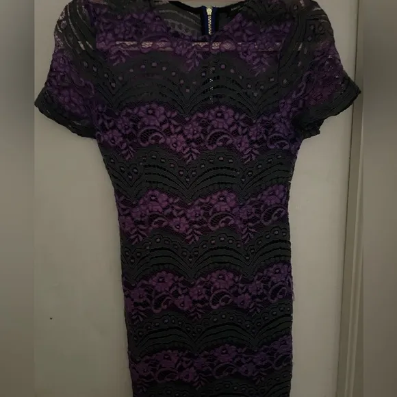 Juniors size Medium Purple striped Lace Dress with Short Sleeves from Romeo & Juliet. Zippered up th... Show more