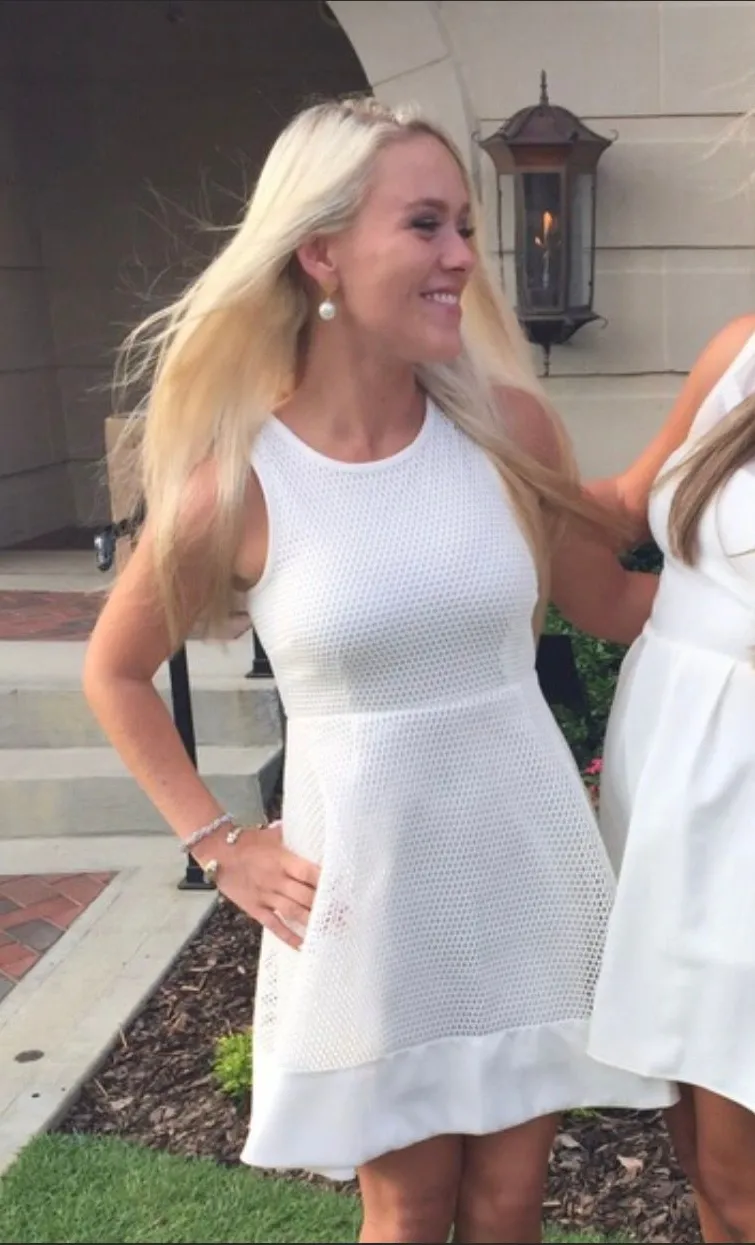 Romeo + Juliet couture white dress. neoprene material comes in at the hip and flares out. super flat... Show more