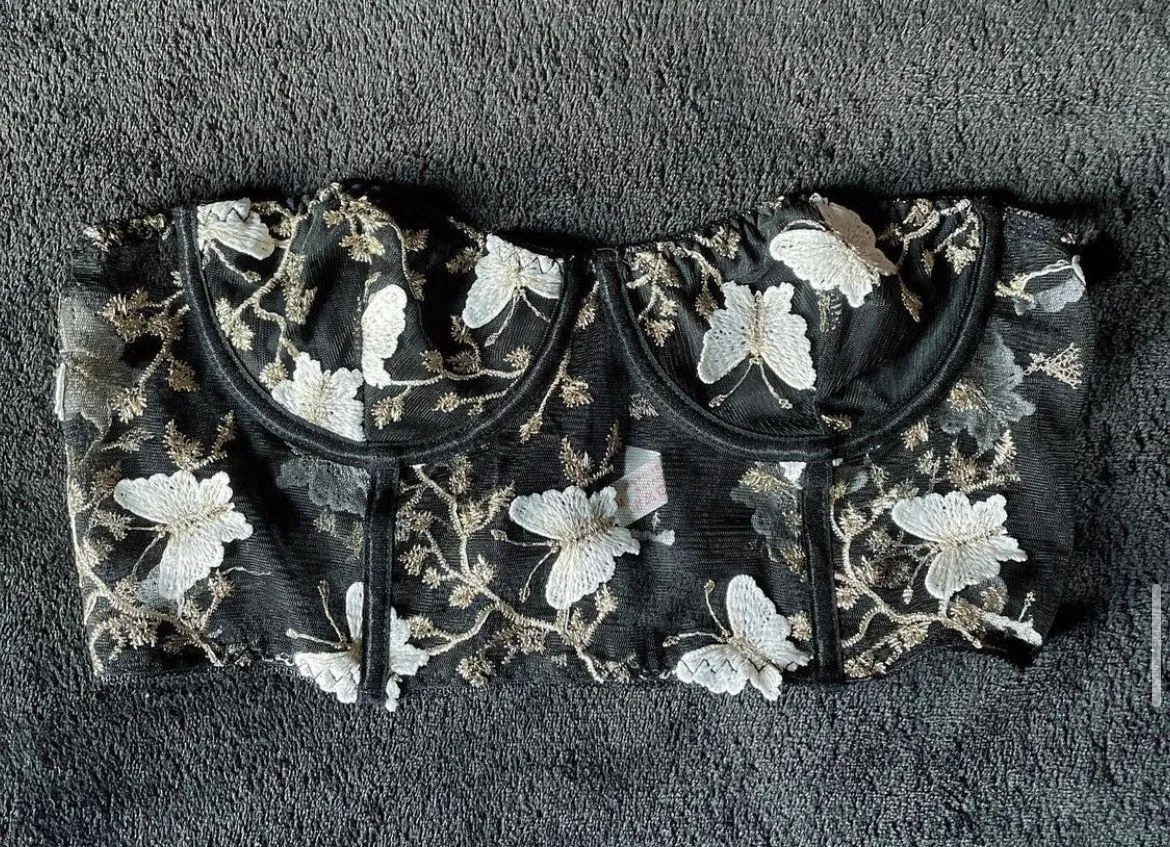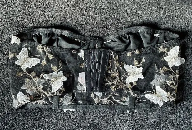 Black underwire crop top / bandeau. Never worn, I didn’t like the way it fit me. Has embroidered des... Show more