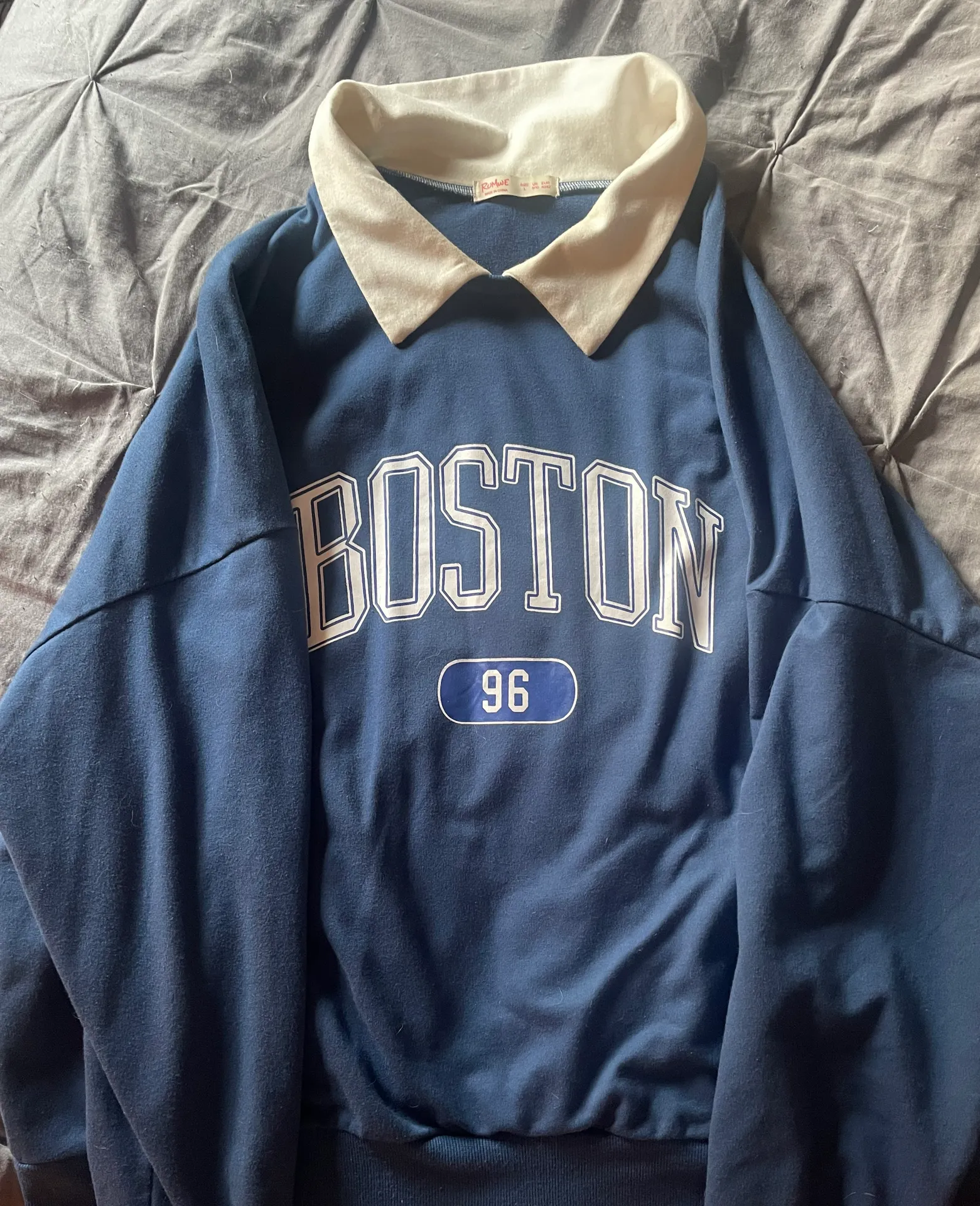 Blue collared sweatshirt from Romwe. Kinda thin but I liked to wear it with a tennis skirt. Size lar... Show more