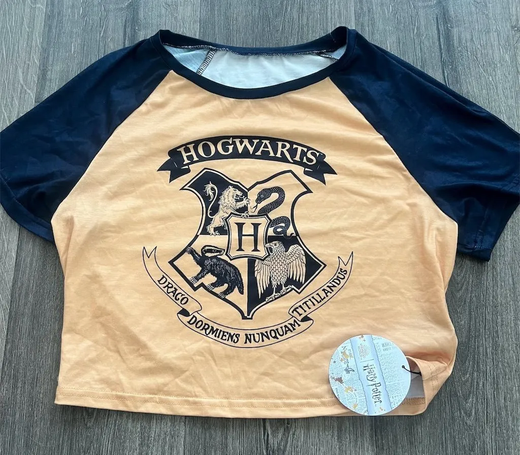 Keywords: Harry Potter, Hogwarts, graphic print, unisex, 3/4 sleeve, multicolor, casual, officially licensed, machine washable, ROMWE, T-shirt, crew neck, regular fit, spring fashion, Harry Potter merchandise.