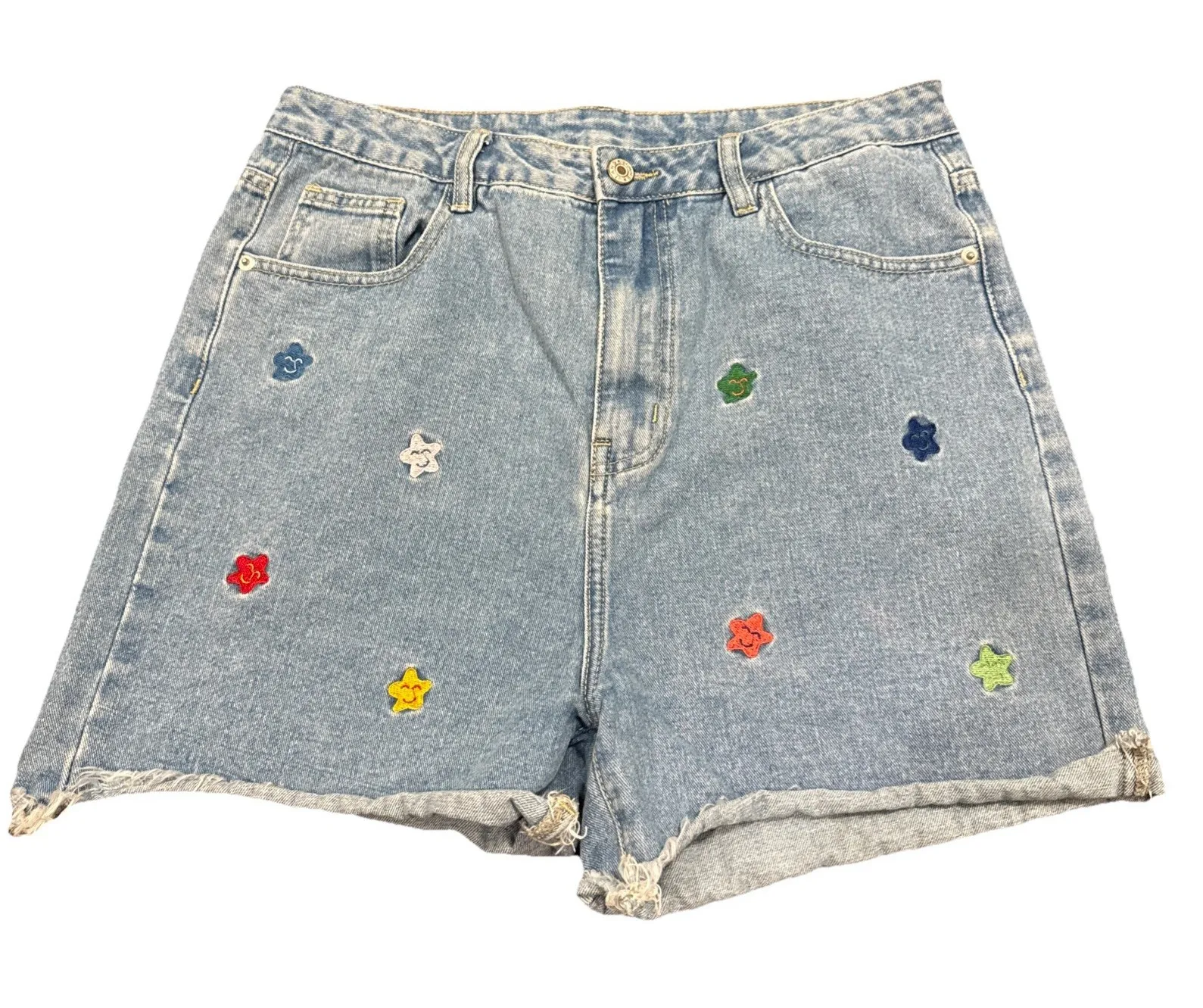 Romwe Womens Large 8/10 Denim Shorts Embroidered Colorful Stars Festival Boho - $20 - From Andrea
