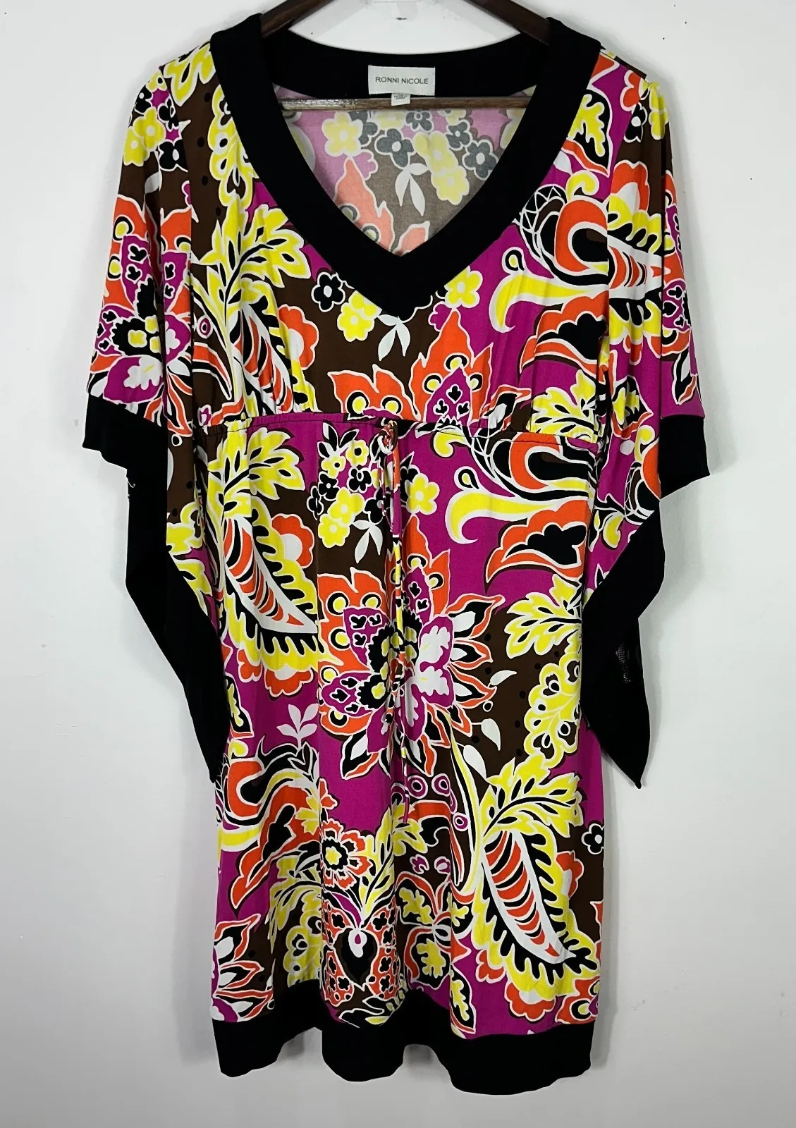 Ronni Nicole Dress 12 Multicolor Paisley Print Boho Retro Y2K Festival Dopamine Vibrant and eye-catching, this Ronni Nicole dress in size 12 features a multicolor paisley-inspired abstract print in pink, yellow, orange, black, and brown. Made from a comfortable stretch poly/spandex blend, this dress offers a flattering fit with a tunic-style silhouette and bold statement pattern. Perfect for both work and play, this piece easily transitions from office chic to weekend festival. The bold maximalist design appeals to both retro/Y2K enthusiasts and modern dopamine dressing trends. A must-have for anyone looking to add a statement piece to their wardrobe. ---------------------------------------- Features: * Brand: Ronni Nicole * Size: 12 * Color/Pattern: Multicolor paisley/abstract print * Material: 95% Polyester, 5% Spandex * Stretch fabric for comfort and fit * Tunic silhouette with V-neckline * Pull-on style * Perfect for workwear, boho styling, or festival looks * boho chic, retro revival, Y2K fashion, dopamine dressing, festival outfit, maximalist style, abstract print dress, statement piece, career chic, mature style, vacation dress, 90s inspired #BohoChic #FestivalStyle #Y2KOutfit #DopamineDressing #RetroVibes