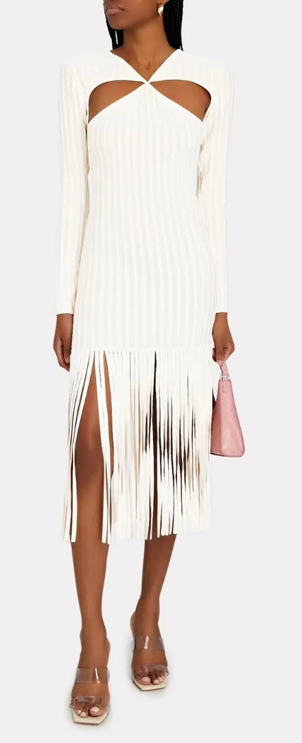 Ronny Kobo Jermaine Cut Out Fringed Knit Long Sleeve Midi Dress. Unlined. Hidden back zipper closure... Show more