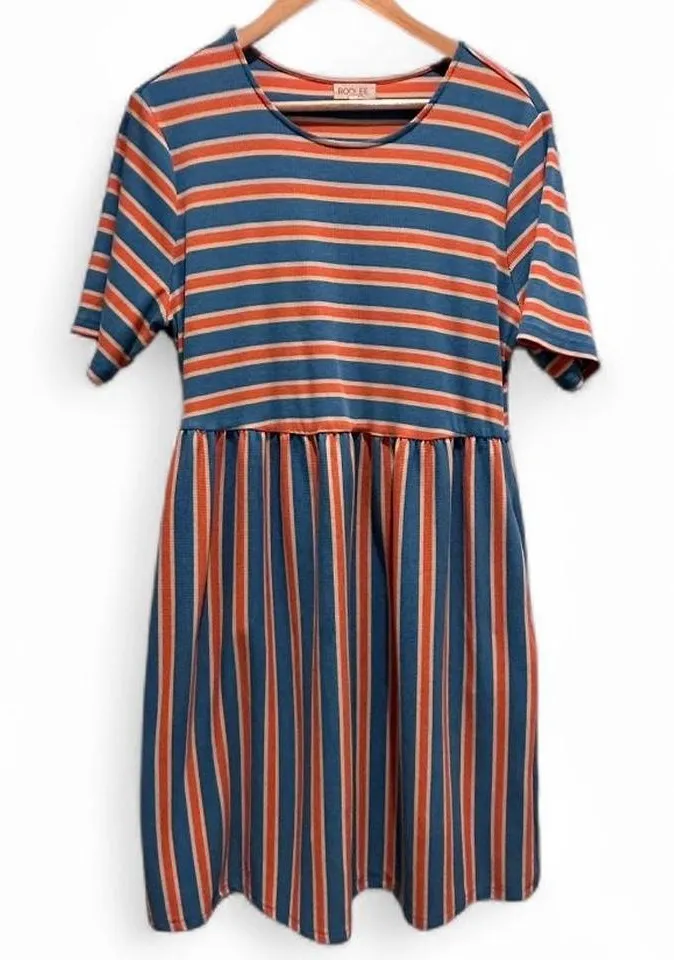 Roolee Maternity Blue Orange White Striped Babydoll Dress Sz XL‎ - $30 - From kj