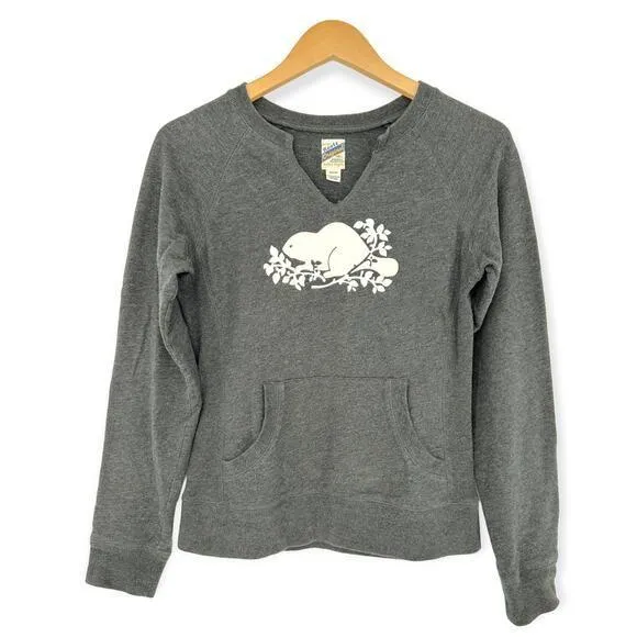• Color: Graphite Gray • Vintage vibe • Slim fit • Comfort side inserts • Ribbed cuffs & hem • Cooper beaver logo on chest in excellent condition • Front kanga pocket • Crew slit v-neckline • 80% Cotton / 20% Polyester Approx. Measurements Flat: Size: XS Width: 16” • Pit to pit Length: 22” • Shoulder to hem Very gently used, pre-owned item - no obvious flaws or significant wear.