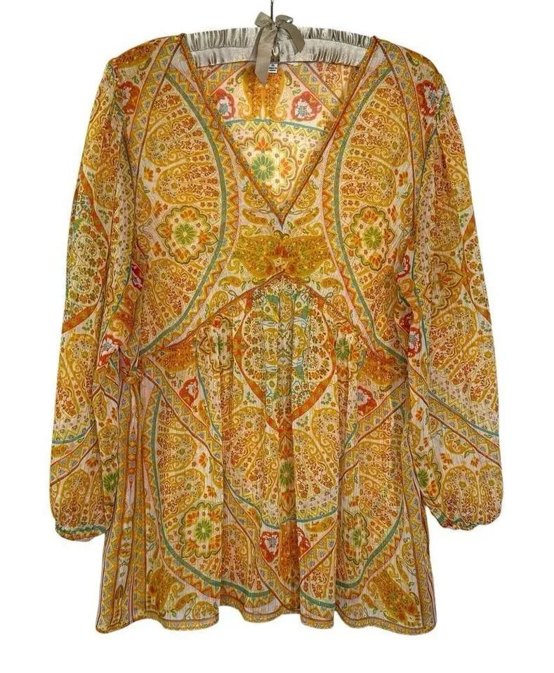 Rose + Olive Blouse XL Babydoll Boho Peasant Gypsy Floral Puff Sleeve Tunic Top Excellent condition... Show more