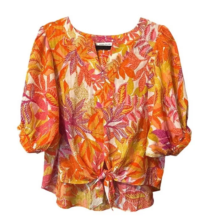 Rose & Olive Vibrant Floral Blouse - Orange, Pink, Yellow Size M Orange Size M - $20 - From Saira