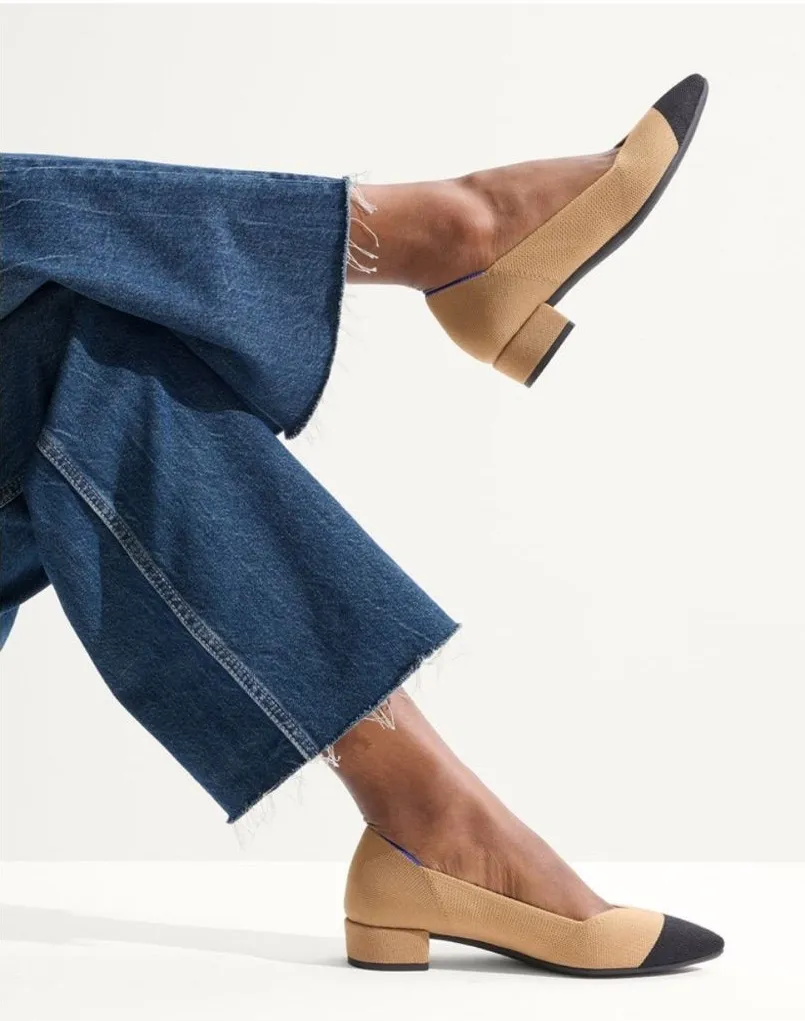 The High Point in Wren Captoe Premium knit upper in a camel and chic black captoe with a smooth, refined shape. Features our In Love Insole™ in beige for heel-to-toe cushioning and all-day wearability. More spacious toe box for less scrunching and bunching. Added elastic gently expands and contracts for all-day wearability. 1.25-in (3.2-cm) block heel for added height.