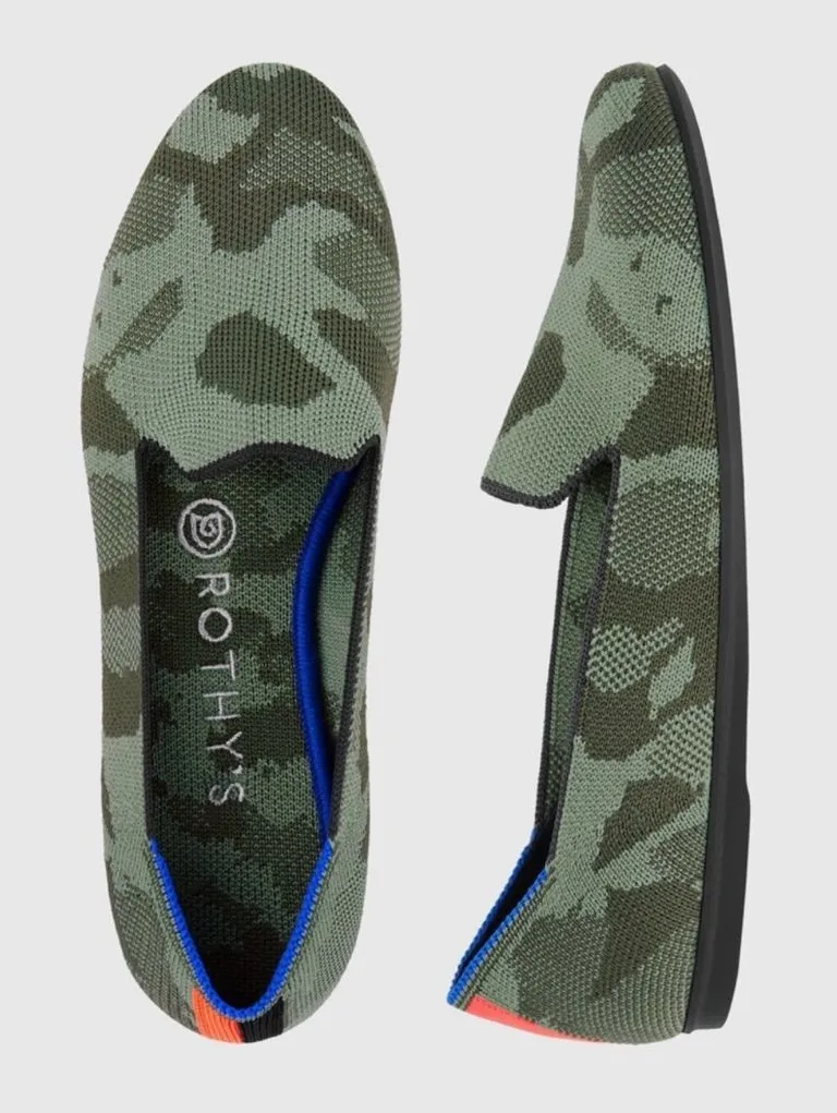 Rothy's Olive Camo Loafers Flats Camouflage Print Army Slip-Ons Round Toe Green Black Orange Cobalt... Show more