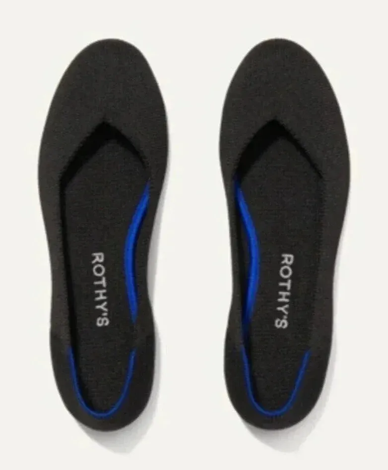Rothys The Flat Knit Honeycomb Rounded Toe Flats Shoes in Black/Blue Halo Women's Size W 7 Round Toe Textile Upper 100% Recycled 100% Recycled Rubber Sole Pre-owned Excellent condition No insoles. Insoles are not included Please see pictures