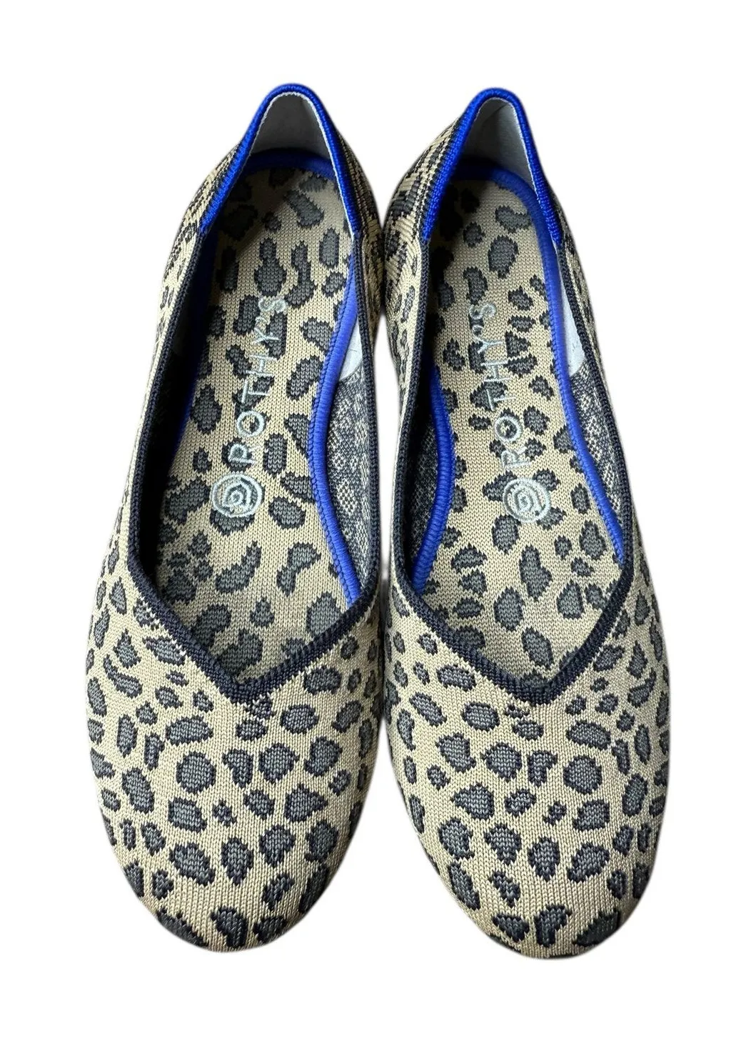 Rothy’s The Flat in a classic round-toe silhouette with a leopard print design. Made from Rothy’s signature recycled knit material, these flats are lightweight, breathable, flexible, and fully machine washable. Comfortable everyday shoe with a sleek ballet-flat profile that pairs easily with jeans, workwear, and casual outfits. Slip-on style with a supportive insole and durable sole. Neutral leopard print adds a chic statement while remaining versatile. Pre-owned with light signs of wear consistent with normal use. Clean and ready to wear. Size: 8 leopard flats, ballet flats, round toe flats, animal print shoes, sustainable fashion, eco friendly shoes, minimalist flats, everyday comfort shoes, washable flats, capsule wardrobe staple