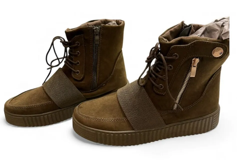 Army Green Platform Combat Boots Zip And Lace Up Punk Women's Size 10 (EU 40) are stylish and trendy footwear with a round toe shape and low heel height, these boots are comfortable and fashionable. The army/olive green color, zipper accents, and platform style add to the overall appeal of the boot, making it a versatile option for various outfits. Made with a man-made upper material and a rubber outsole, these boots are durable and practical for everyday wear. Non smoking environment.