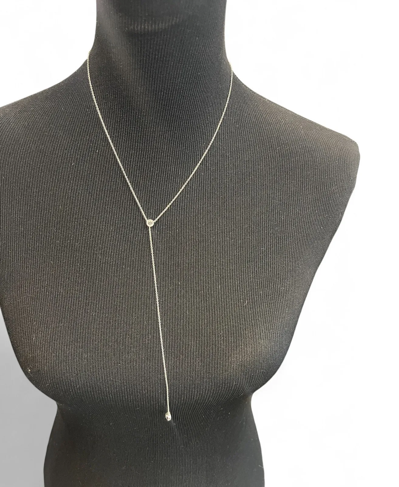 Round Cut Bezel Channel Cubic Zirconia Long Y Lariat Silver Chain Necklace - $13 - From Sourced In SoCa