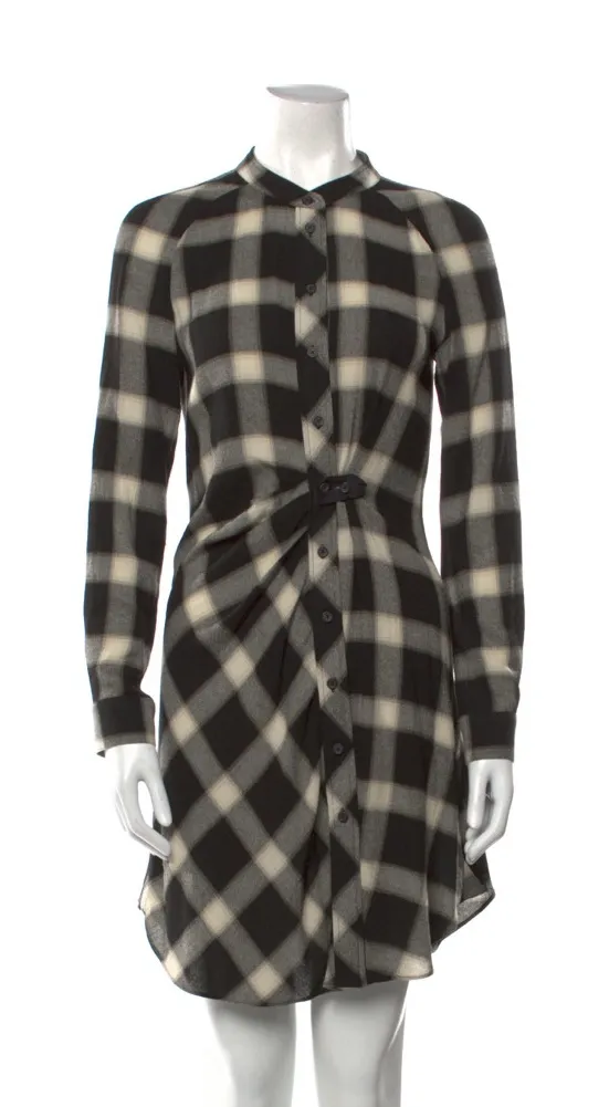 Derek Lam 10 Crosby High end designer, retails for $500 Worn once, perfect condition, no flaws 25% wool Size 0, would fit xs - small Derek Lam 10 Crosby Shirtdress Black and cream Plaid Print Long Sleeve with Mock Neck when fully buttoned