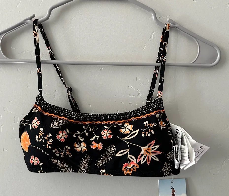 Chic black bandeau with colorful floral patterns. Ideal for a stylish look. Size XS NWT