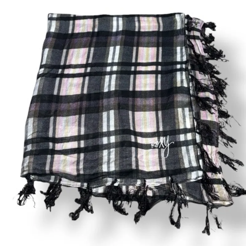 Roxy lightweight woven scarf in a neutral plaid color palette Black gray cream and soft blush tones... Show more