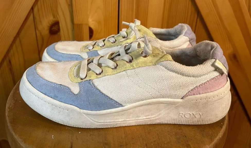 Roxy Womens Charlie Sneakers Sz 8 White Blue Pastel Fabric Lace Up Casual Shoes minor wear see photo... Show more