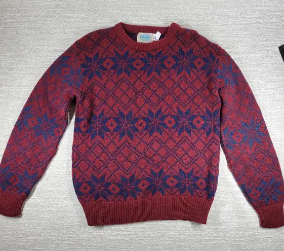 Royal North Mills Outfitters Vintage Wool Sweater Measurements: 21" pit to pit × 28" length Condition: Excellent vintage condition — soft wear consistent with age, no holes or stains. Features: Authentic vintage Royal North Mills Outfitters label 85% wool / 15% nylon blend Classic red + navy geometric snowflake pattern Ribbed cuffs, hem, and neckline Shop Policies & Vibes: • Orders ship same day if placed by 3pm EST (USPS mail days) • Clean, smoke-free environment • Most pieces are lovingly pre-owned and may show gentle wear • Irregularities marked with an * — most are minor or fixable • Questions? Ask away — I want you to love what you get! Thanks for shopping Anew Again Styles 💚