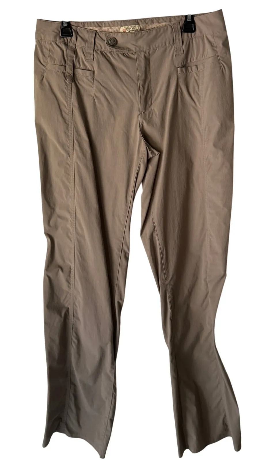 Royal Robbins Women’s Hiking Pants Size 12 Regular Beige Stretch Outdoor Travel • Brand: Royal Robbins • Size: US 12 (Regular Length) • Color: Beige / Khaki • Material: 96% Nylon, 4% Spandex • Style: Lightweight hiking/travel pants • Features: • Quick-dry, breathable stretch fabric • Mesh-lined waistband for comfort • Zip fly with button closure • Flared leg fit • Multiple pockets for utility • Made in Vietnam • Ideal for hiking, travel, or outdoor activities • Condition: Excellent pre-owned condition Keywords: Royal Robbins hiking pants, women’s travel pants, stretch outdoor pants, quick dry pants, UPF pants, size 12 beige trousers, safari pants, trail pants, camping clothes, adventure gear, lightweight hiking wear, outdoorsy minimalist, summer hike travel pants