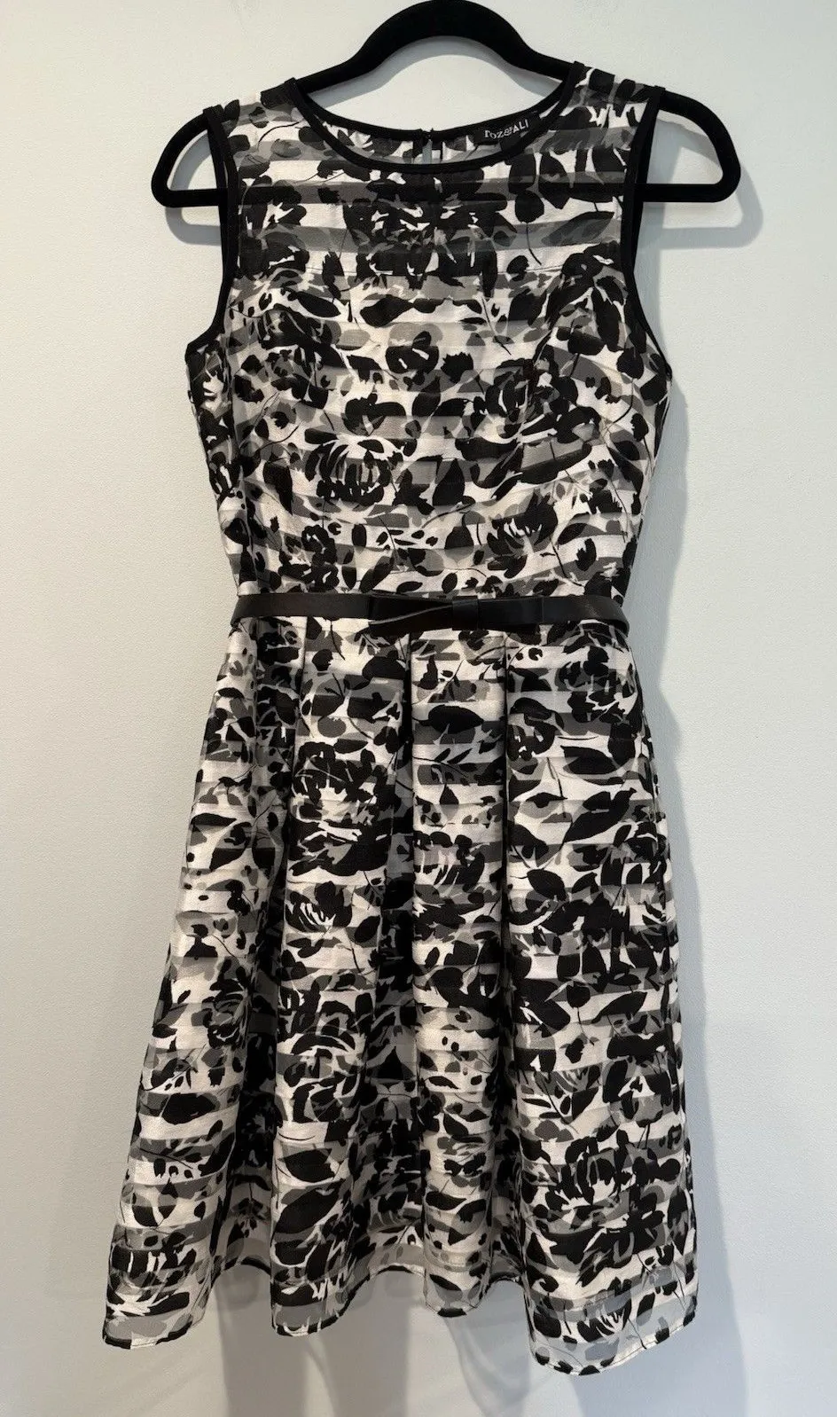 Roz &Ali Dress Womens 2 Black White Fit & Flare w/ Belt Floral Spring Wedding · Size 2 · Materials... Show more
