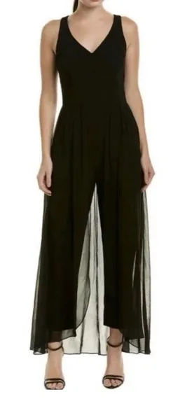 Roz&Ali Black Sleeveless Chiffon Overlap Wide Leg Jumpsuit V Neck sz 6 Wedding ✨ Details: Black slee... Show more