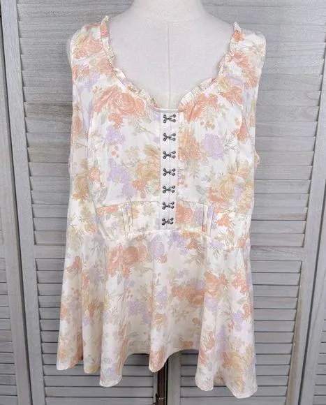 NWT Gorgeous floral corset style babydoll top. -Pullover style -Stretchy, smocked back panel -Ruffl... Show more