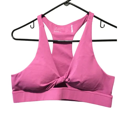 Elevate your workout wardrobe with this vibrant pink sports bra, designed for both performance and style. A chic twist front detail adds a touch of flair, making it a standout piece for any active ensemble. The bra offers excellent support and freedom of movement, ensuring comfort during your most intense workouts. A racerback design offers enhanced support, while the soft, breathable fabric keeps you cool and dry. Perfect for yoga sessions, gym workouts, or even as a stylish layering piece for athleisure looks, this bra combines functionality with a fashionable edge. Wear it to your next pilates class or while running errands for a sporty yet stylish look. Color: Pink Type: Bra Style: Sports Bra Band Size: XL Support Level: Medium Character: Power Girl, Wonder Girl, Stella, Harmony, Pop Features: Moisture Wicking, Lightweight, Removable Pads, Seamless, Compression Performance/Activity: Gym & Training, Yoga, Pilates, Running & Jogging, Athleisure Department: Women Keywords: RSQ sports bra, pink sports bra, twist front bra, workout bra, gym bra, activewear bra, womens sports bra, size XL sports bra, racerback sports bra, exercise bra, running bra, yoga bra, pilates bra, athletic bra, comfortable sports bra
