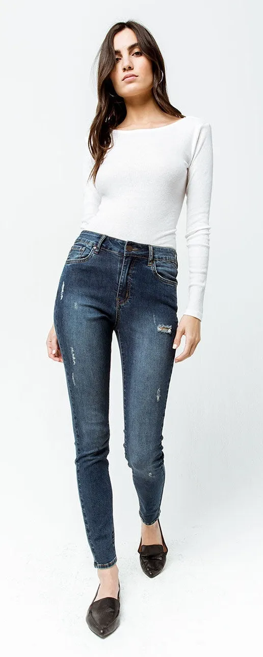 RSQ Womens Jeans Sz 5 or 27 Manhattan High Rise Ripped Skinny Blue Dark Blast GENERALLY SHIP SAME O... Show more