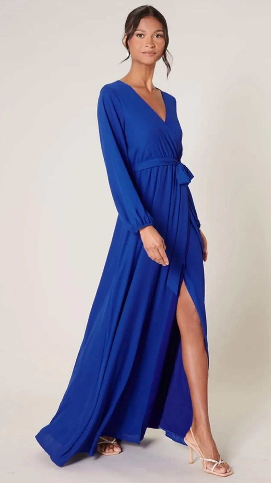 Warm and inviting, the Wholehearted Maxi Dress is a perfect combination of modest and sultry. Long balloon sleeves frame a surplice neckline separated by a tie at the waist, creating a forgiving faux wrap. The skirt maintains an airy and flowy shape that trails behind as you walk down the aisle. - Chiffon - Faux wrap - Keyhole - Elastic waist Size + Fit - Model is 5'9" and wearing size XS - Measurements taken from size S - Chest: 35" - Length: 63 1/4" Fabric Self: 100% Polyester Lining: 97% Polyester, 3% Spandex