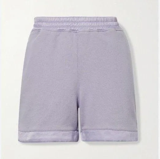 Size Large RtA's 'Edgar' shorts are trimmed with lustrous satin along the waistband and cuffs, adding elegance to the otherwise casual shape. They're cut from cotton-jersey in a lilac shade and have small slits at the sides. Wear yours with a bralette and oversized blazer. Fits true to size, take your normal size High-rise, cut for a slim fit Elasticated at the waist for a flexible fit Mid-weight, stretchy fabric Lilac cotton-jersey and satin Pull on 100% cotton; trim: 100% viscose Machine wash Nordstrom, Revolve, trendy, loungewear, comfy, sweatpants shorts, streetwear