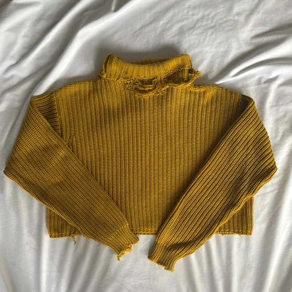 RTA STREETWEAR DISTRESSED DESIGNER LUXURY 100% COTTON MUSTARD TURTLENECK SWEATER Yellow Size M - $69 - From Katy
