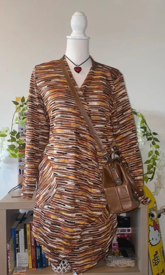 ♡✧゚ cute vintage style whimsical bohemian fairycore orange & brown striped cardigan ✧・゚ ~ Size : M... Show more