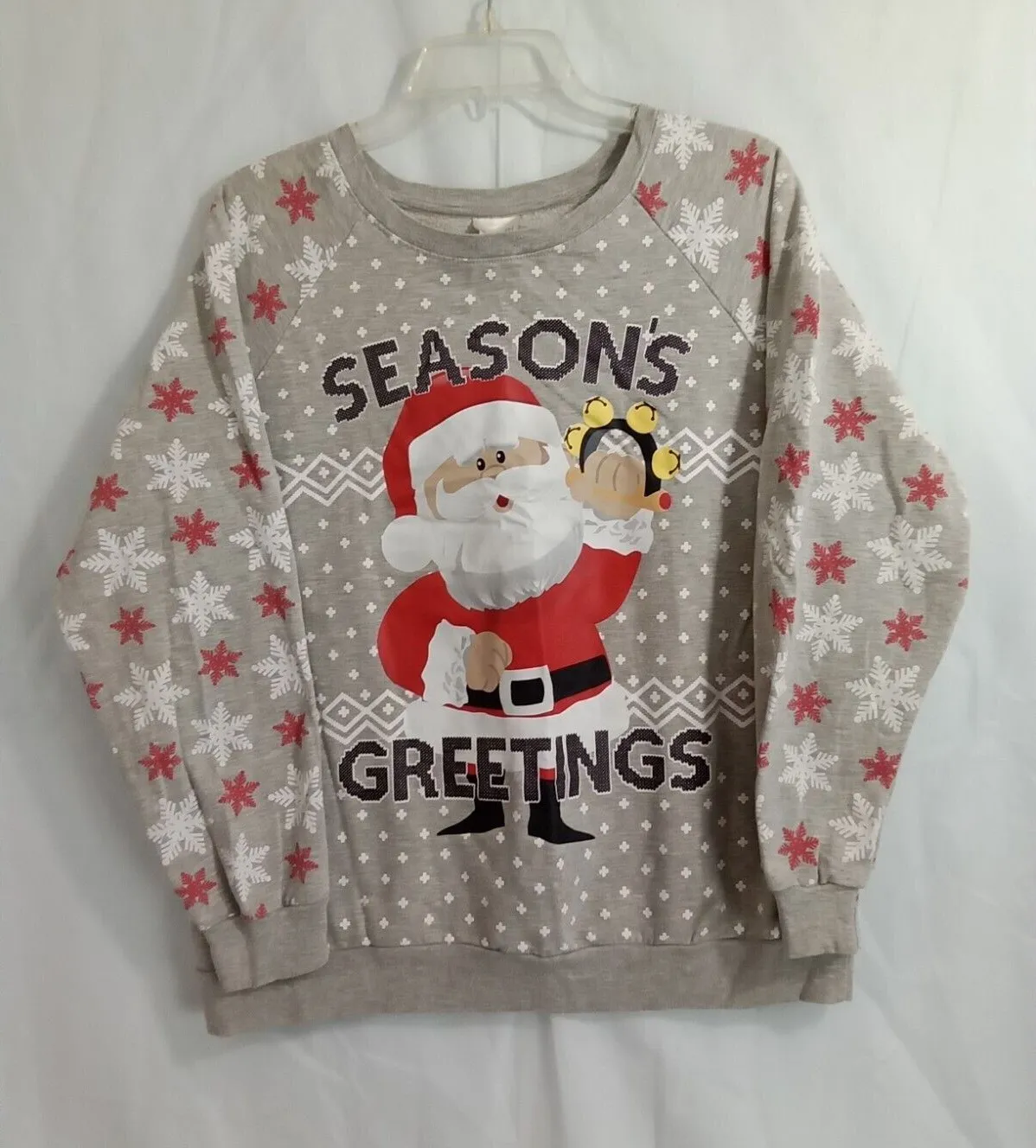 Get into the Christmas spirit with this Rudolph The Red-Nosed Reindeer Santa Sweat Shirt. Perfect for the fall and winter season, this multicolor sweatshirt features a round neckline and long sleeves with a regular size fit for women. The sweatshirt is made of 60% cotton and 40% polyester, ensuring both comfort and durability. The sweatshirt is designed with a Christmas theme and features Santa Claus as the character, making it a great addition to your holiday wardrobe. This top is perfect for casual wear and is available in size XL (15-17). Get ready to celebrate the holidays in style with this Rudolph The Red-Nosed Reindeer Santa Sweat Shirt. Pit to pit 21" Length 27"