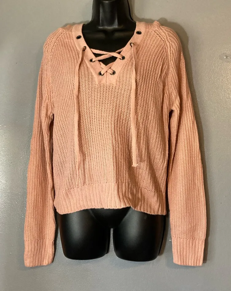Rue21 Pink Lace-Up V-Neck Hooded Sweater size : medium mannequin is an adult size- s/m approxi... Show more