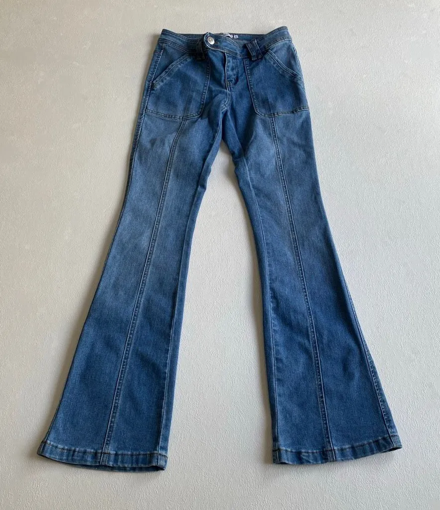 Rue21 women’s blue denim flare jeans in size 6. These jeans feature a flattering high-rise waist wit... Show more