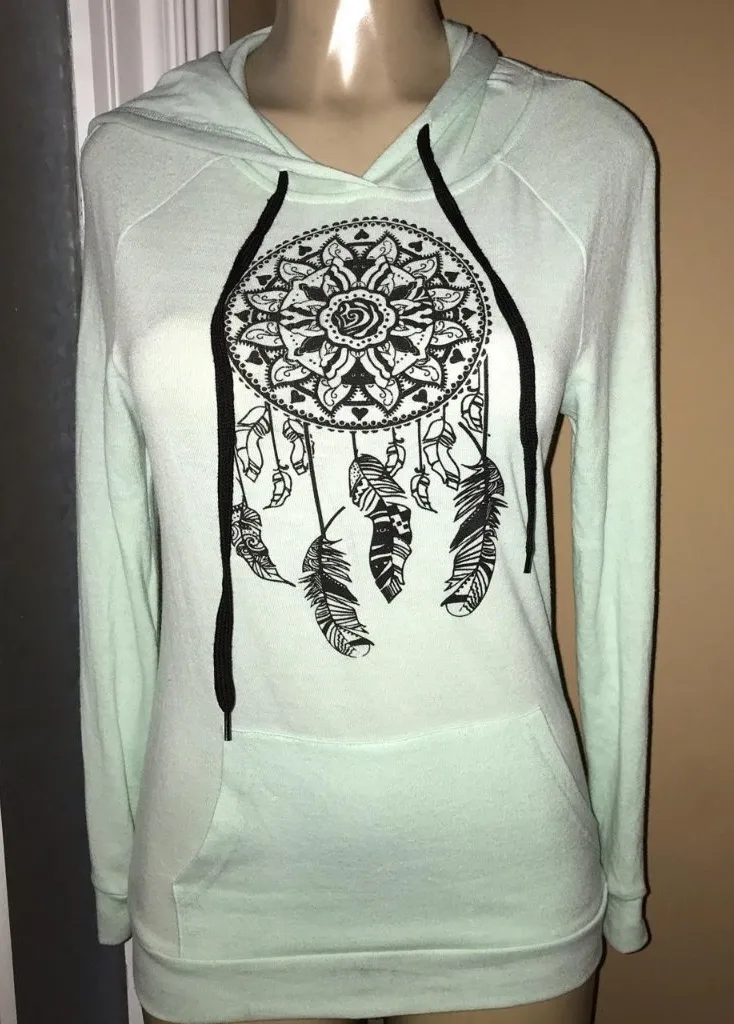 Rue 21 Dream Catcher Hooded Green Thin Sweatshirt with Hoodie. Preloved has some mini markings and i... Show more