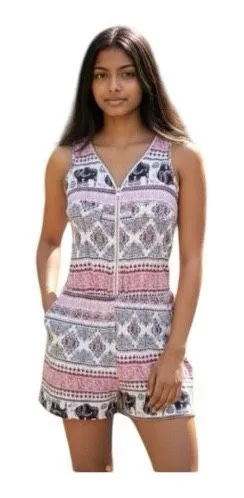 This colorful Rue 21 romper features a playful elephant print and a zip-front closure. The sleeveles... Show more