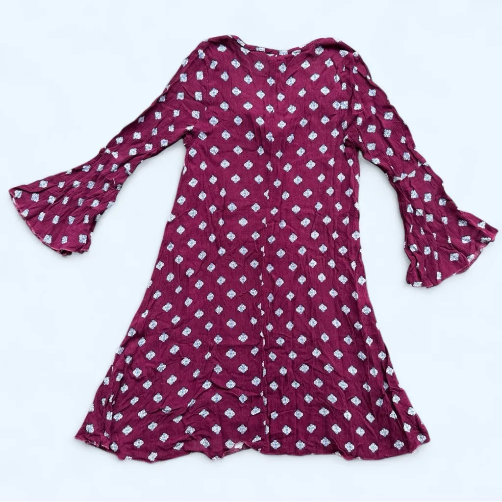 Great condition: some runs, snags & loose threads. Tear on string Rue21 Pattern Print Bell Sleeve M... Show more
