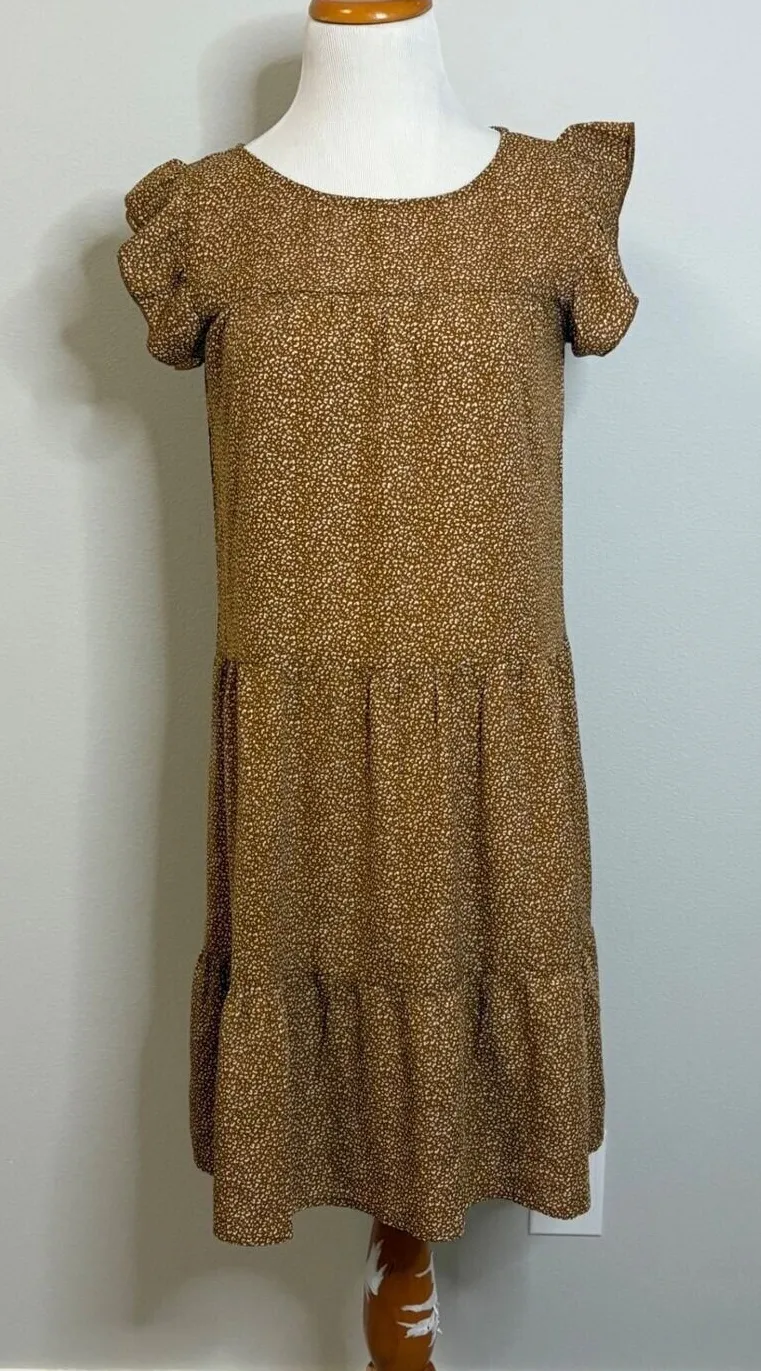 Ruffle Sleeve Tiered Midi Long Short Sleeve Alredine Dress NWOT Casual Brown XS A charming tiered m... Show more