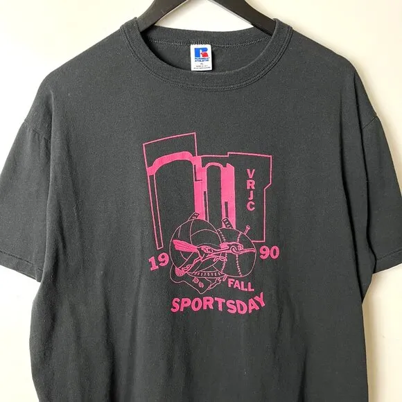 Russell Athletic Vintage 1990 VRJC Fall Sports Day T-Shirt XL Black Graphic Tee Made in USA Unisex F... Show more