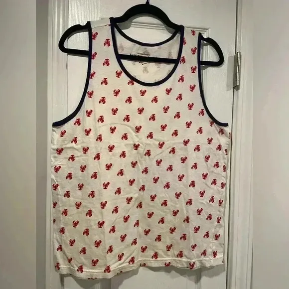 Rustic Souls Excellent condition Women’s size medium Red lobster print with blue trim on sleeves and hem Sleeveless tee shirt tank top blouse Pullover Cotton Scoop neck crew neck thick straps Comfy breathable