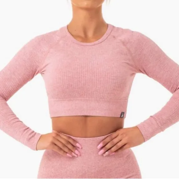 Brand: Ryderwear Size: XS (please see measurements below) Style: Heather pink and white ribbed cropped top. Long sleeves. Seamless design. Material offers stretch. Condition: New with tags Approximate measurements when laid flat: 13” p/p, 22.5” sleeves and 14.75” length from top of shoulder to bottom hem. Please feel free to reach out with any questions prior to purchase. Comes from a smoke free home. I typically ship within 24 hours but please be advised that I do not ship on Saturdays, Sundays or holidays. Thanks you for understanding!