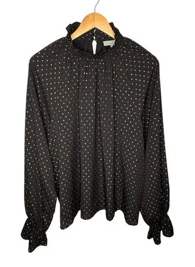 All orders shipped next business day. Ryegrass Blouse Ruffle Mock Neck Long Sleeve Gold Dot Black W... Show more