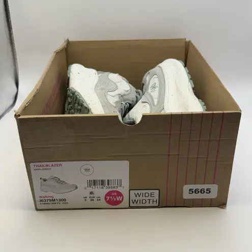 This is a pair of Ryka Trailblazer women's athletic sneakers in green, size 7.5 W. The shoes are made of leather with a comfortable W width fit. Perfect for outdoor activities and sports, these sneakers provide both style and support for active women.