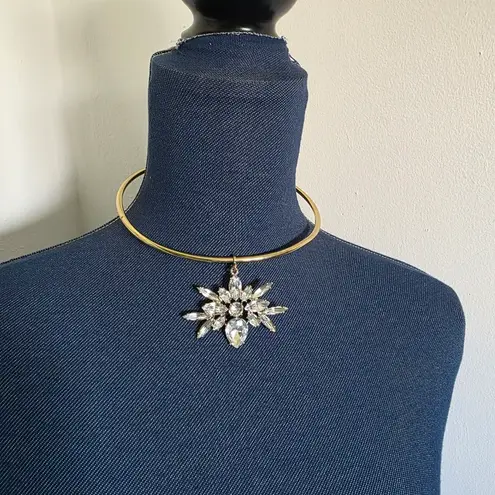 Beautiful necklace and earrings set Gold tone Open hoop choker with cubic zirconia pendant Measur... Show more