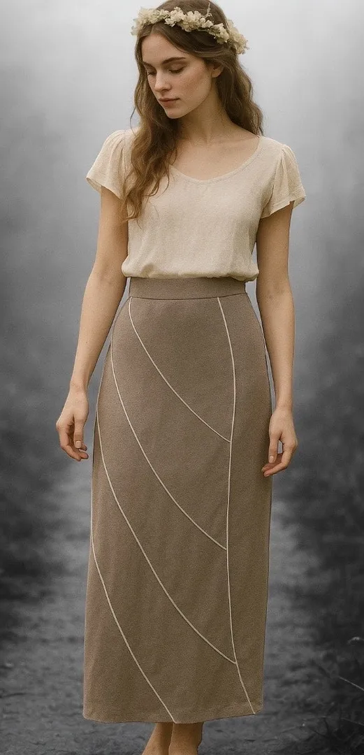Y2K Ann Ferriday Los Angeles skirt Taupe gray maxi length Ethereal exposed seam design with curved p... Show more